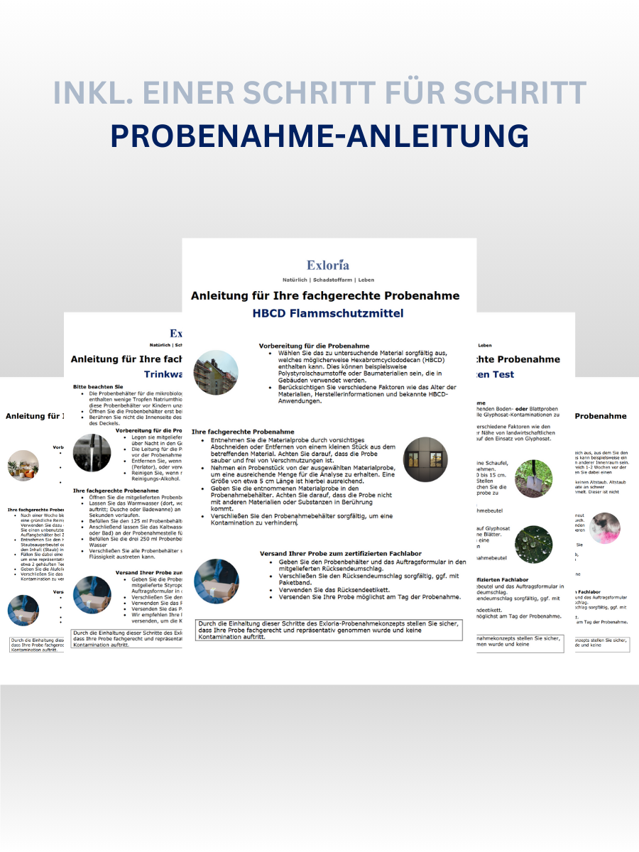 Sie erhalten je nach Schadstoff spezifische Test-Kits für zu Hause für eine einfache und fachgerechte Probenahme inkl. einer Schritt für Schritt Probenahme-Anleitung.